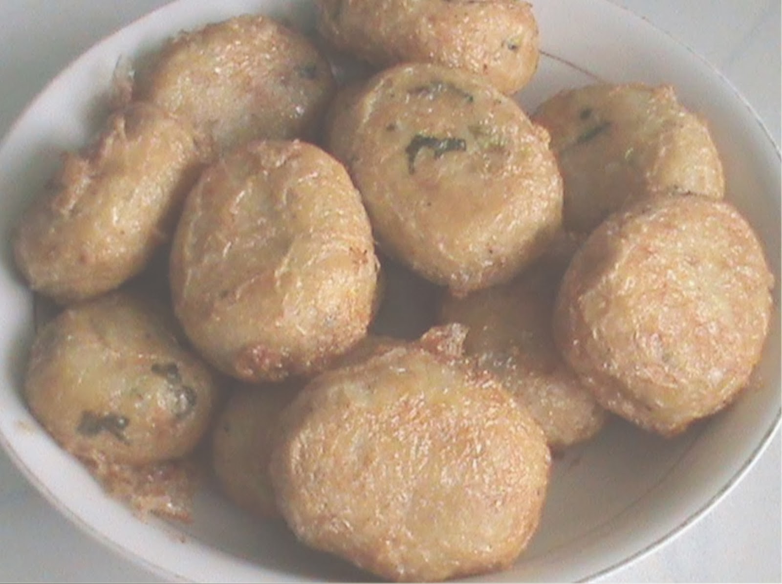 - Goreng adonan kedalam minyak panas hingga berubah kecoklatan. Angkat.